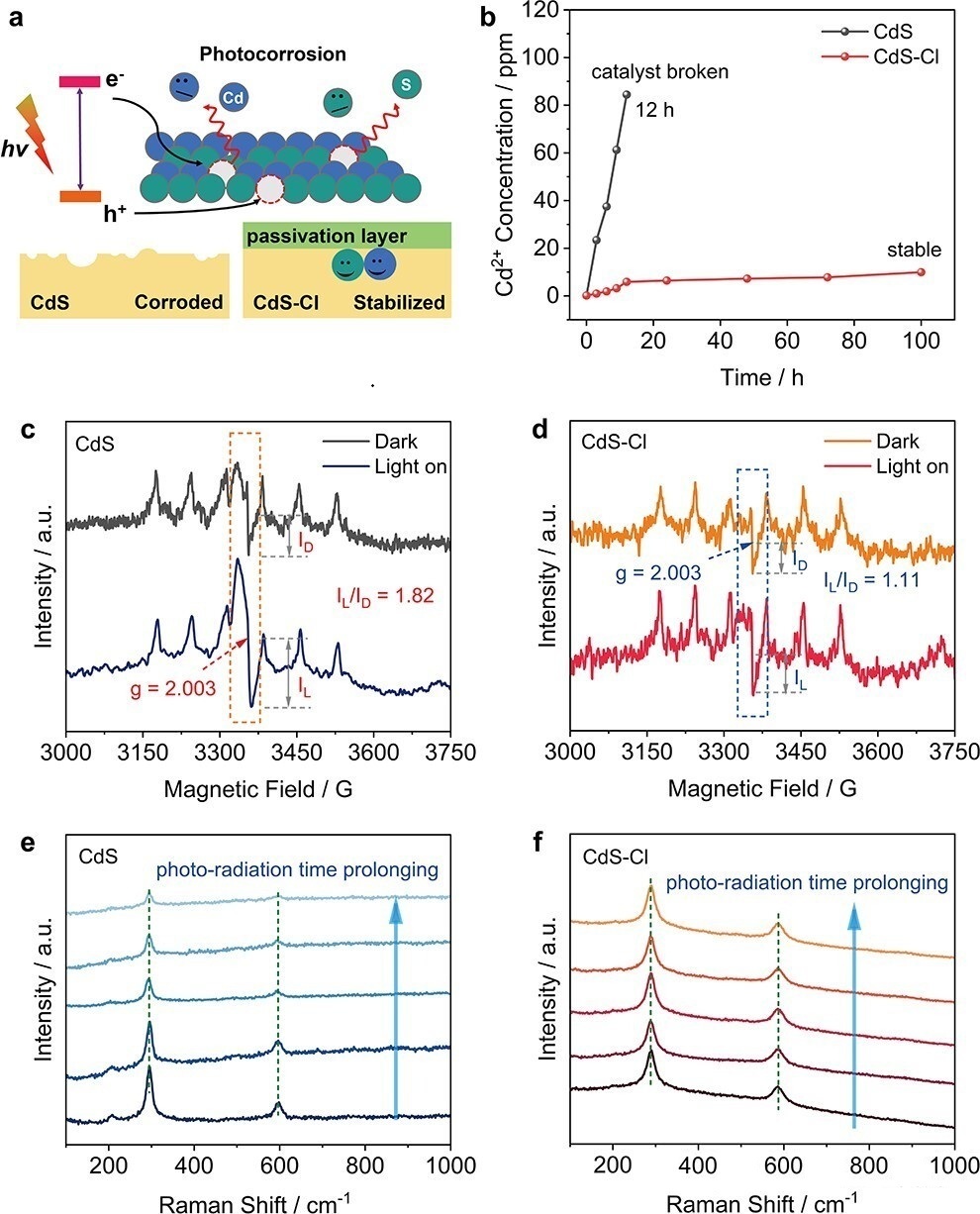 The Electron Paramagnetic Resonance Spectrometer (EPR) at SHMFF plays a crucial role in uncovering the underlying mechanism. By capturing free radical signals during the reaction and monitoring the evolution of material defect states, the EPR measurements revealed that halogen passivation, particularly chlorine, promotes charge transfer while suppressing photocorrosion.