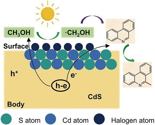 Consequently, halogen-passivated catalysts, denoted as CdS–Hal (Hal = Cl, Br, or I), exhibited exceptional performance and stability in methanol activation and heterocyclic aromatic hydrocarbon methylation.